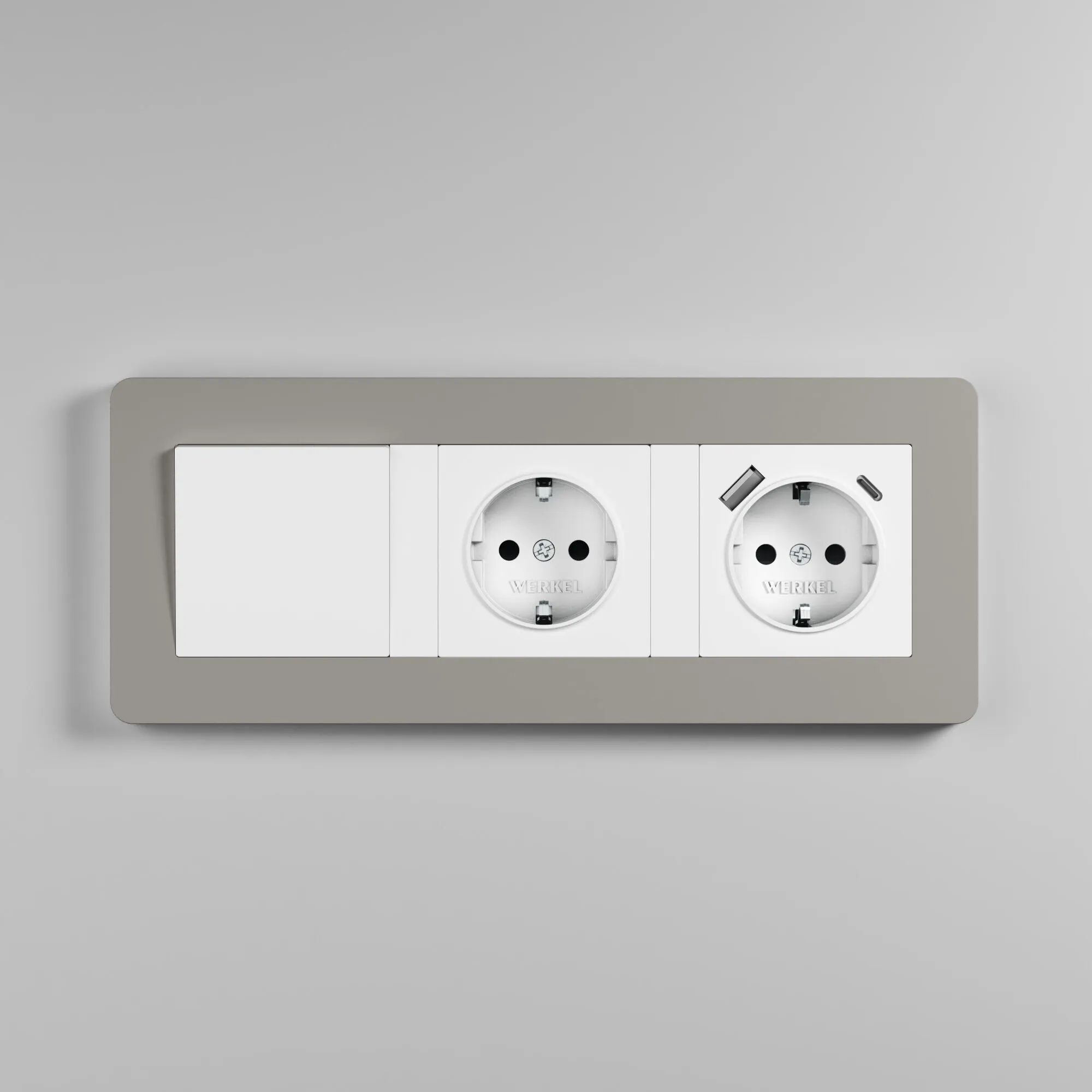 Трехпостовая рамка Split дымчатый/белый soft-touch W0033067 от Werkel — сдержанная элегантность и тактильный комфорт в современном интерьере