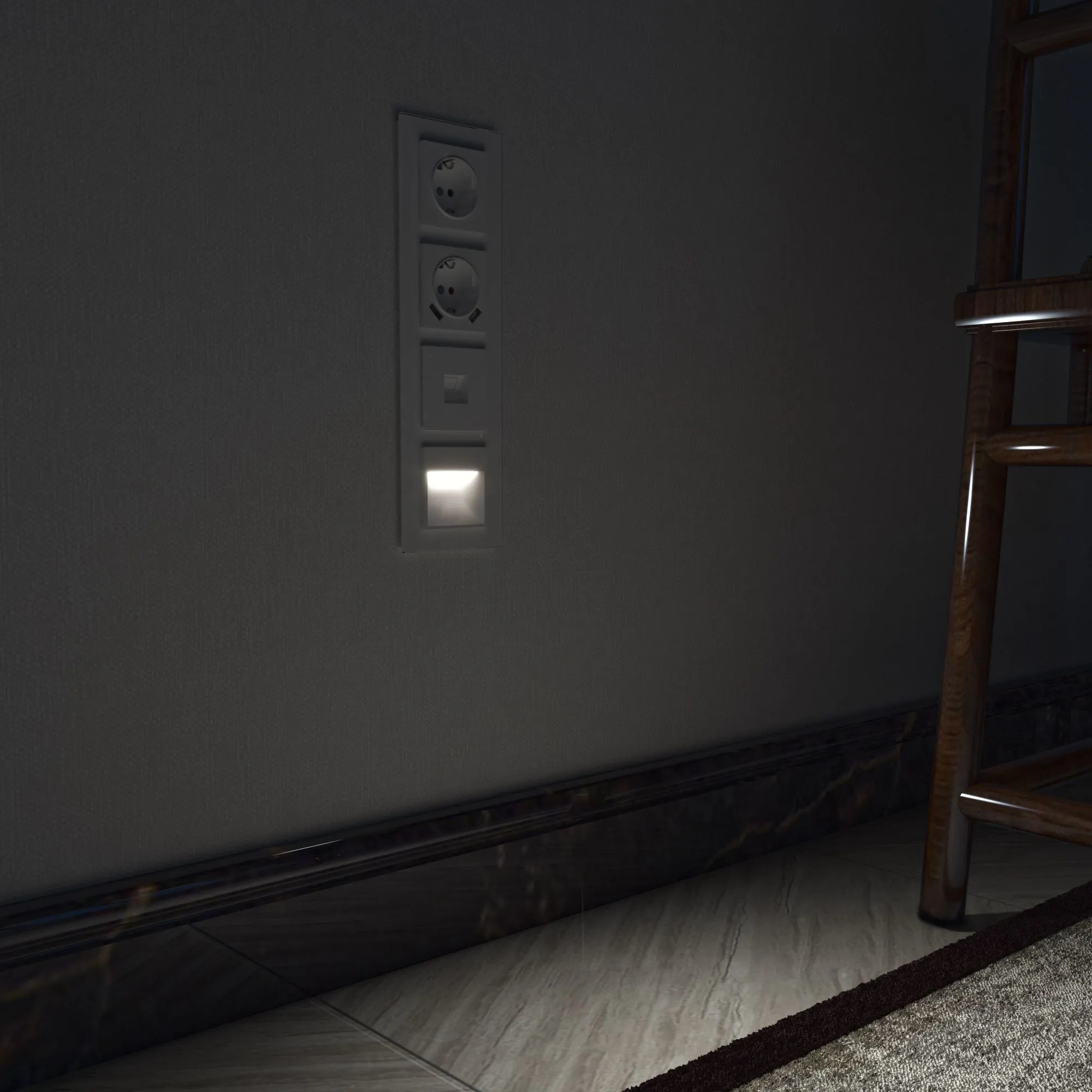 Подсветку можно легко установить в стандартную монтажную коробку, она совместима со всеми рамками коллекции Werkel и не требует специальных навыков для подключения. Эргономичное освещение подходит для ступеней лестниц, коридоров, а также может использоваться в зонах рядом с кроватями и рабочими местами на кухне.