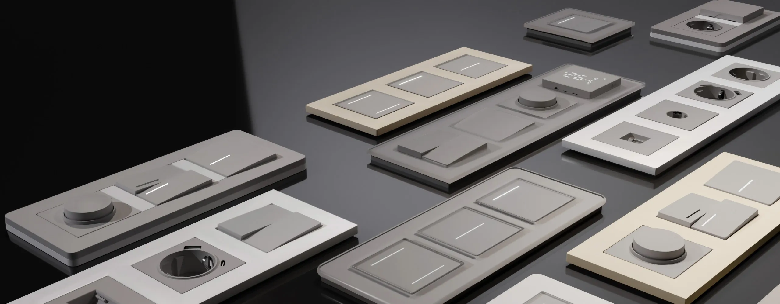 Серия включает 25 видов механизмов , среди которых вы найдете все необходимые решения для проектов квартир и домов: от классических розеток с заземлением до инновационных умных сенсорных выключателей с приятным на ощупь покрытием soft-touch .
